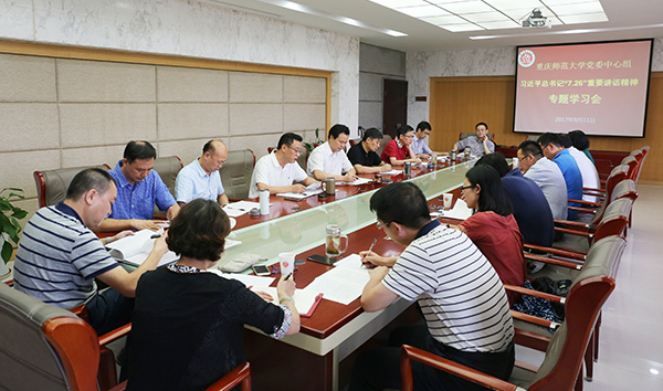 9月11日下午,校党委中心组在综合办公楼309会议室召开专题学习会,深入学习习近平总书记“7·26”重要讲话精神。党委中心组成员参加学习会,校党委书记曾礼主持会议。