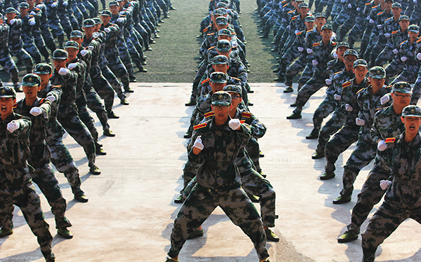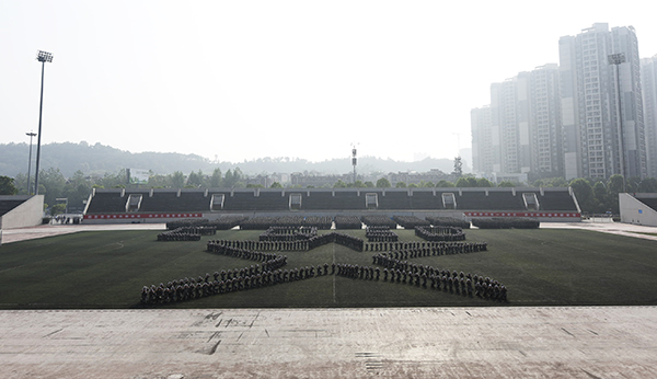 在庄严的升国旗仪式后,学生军训成果展示正式开始。各方队喊着嘹亮的口号,迈着矫健整齐的步伐,依次通过主席台,接受检阅。他们昂首阔步,精神饱满,意气风发,尽显重师学子昂扬向上的风貌。在捕俘拳表演中,“男兵”们出拳虎虎生威,踢腿凌厉有力,似雄壮有力的猛虎,精彩的表演赢得了全场热烈的掌声。女子表演方队巾帼不让须眉,她们用热血之心展现出铿锵玫瑰的飒爽英姿。她们从不同方向有序汇集,摆出党徽、五角星和“两学一做”、“CQSD”的图案、字样,队形设计独具匠心。