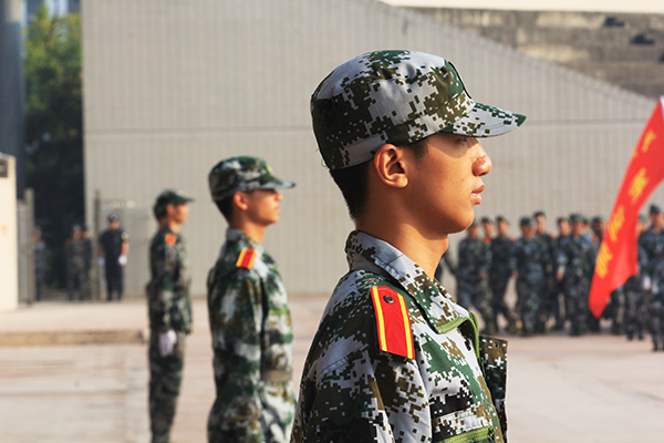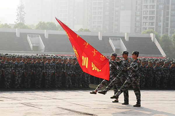 三是,希望大家不负初心,砥砺前行。周校长指出,大学生活不再是高中单调的三点一线,学习不再如高中只有唯一的答案,遇到的困惑会越来越多,面临的压力会越来越大。希望大家保持定力,不管外界噪音多大,都不要忘了为什么出发;无论遇到什么挫折与困难,都不要放弃砥砺前行的勇气。周校长还以今年奥运会上中国女排时隔12年后再次夺冠为例,勉励同学们继续保持不怕“苦心志、劳筋骨、晒体肤”的军训精神,迎难而上,拿出精气神,洒四年辛勤之汗水,搏终身无悔之青春!