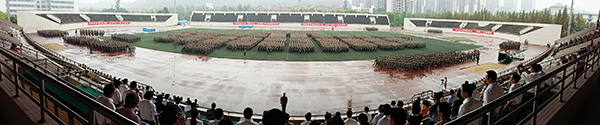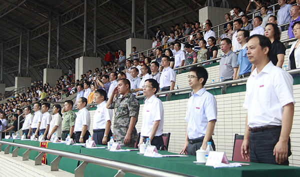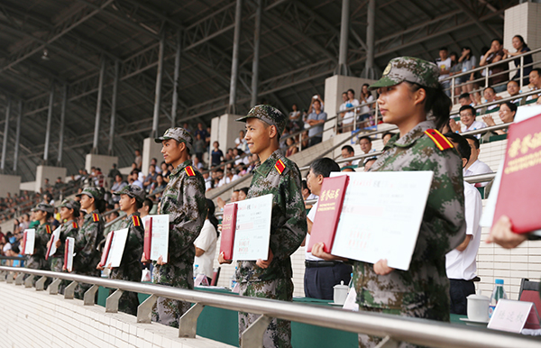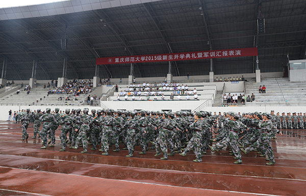 9月5日上午,bw必威2015级新生开学典礼暨军训汇报表演在大学城校区田径运动场举行。
