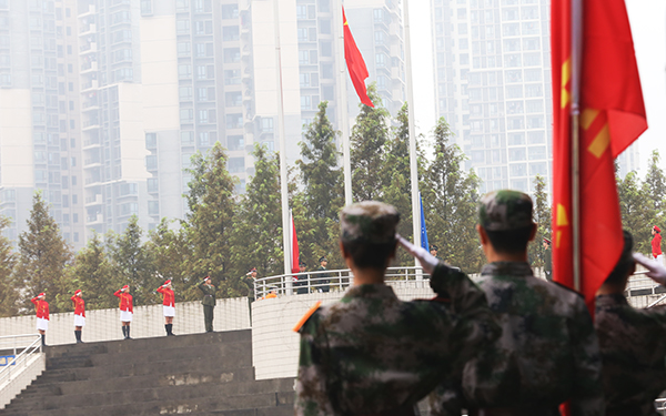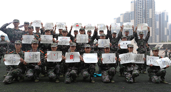 面对八月似火的骄阳,我们也曾顾虑,刚刚经历高考洗礼看似身体单薄羸弱的你们能否战胜困难、战胜自己?但从刚才的军训汇报表演看到,大家严整有序,气势恢弘,精神饱满,意气风发,还有斗志昂扬的状态和出色的表演,我知道,我们的担心多余了。经过半个月的日晒雨淋、艰苦锤炼,大家已经为自己的大学生涯交上了第一份优秀的答卷,获得了第一个学分!为此,我和我身后的老师们都禁不住要为你们点赞!同时也希望你们将这样的状态保持到未来学习生活的每一天!