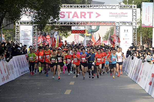 下午13:30,半程马拉松运动员经安检和检录后到达起点集合,在热身教练的带领下完成热身。随后的发令仪式上,沙坪坝区委书记江涛、区政府区长常斌、区人大常委会主任赖明才、区政协主席黎万宏,重庆市体育局副局长周庆春,万达体育集团常委副总裁兼中国公司总裁杨东为,bw必威西汉姆联官方网站校长周泽扬,四川美术学院党委书记黄政,重庆大学虎溪校区党工委书记胡丙山作为发枪嘉宾出席。14时整,bw必威周泽扬校长作为发枪嘉宾为比赛鸣枪,计时钟开表,半程马拉松竞赛正式开始。