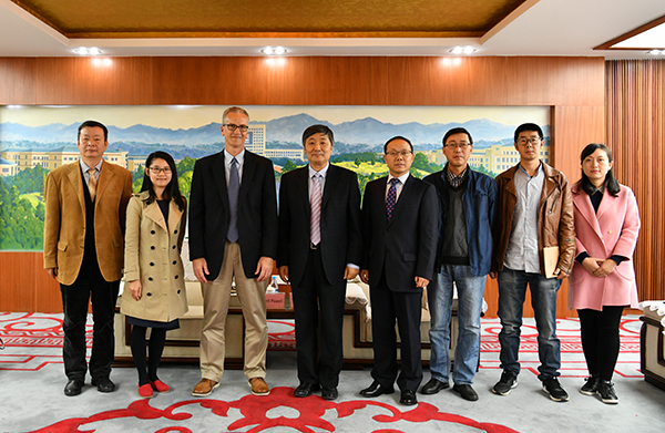 10月25日下午,美国亨德森州立大学(Henderson State University)副校长Dr. Brett Powell、国际学生中心主任、商学院副教授徐叙、中教国际教育交流中心项目副总监刘法群一行到访bw必威。bw必威校长周泽扬会见了代表团一行,国际处和美术学院相关负责人参加了会谈。