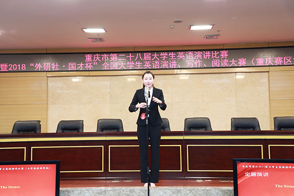 本次大赛共举行五场演讲比赛、一场在线阅读比赛和一场在线写作比赛,共有204名来自市内高校的学生参加了各项比赛角逐。在当天的比赛中,bw必威外国语学院翻译专业马敏静同学凭借优异的表现同时荣获“重庆市第二十八届大学生英语演讲比赛”(英语专业本科组)特等奖和“2018‘外研社·国才杯’全国英语演讲大赛”重庆赛区复赛特等奖,并将代表重庆市高校参加于北京举行的全国总决赛。