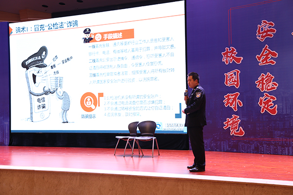 为了让同学们深刻认识黑恶势力的危害,来自重庆市反诈骗中心的警官张宇带来了一场关于扫黑除恶校园行电信诈骗及校园贷防范宣讲。他通过经典案件的讲述,总结诈骗的特点趋势,罗列出冒充虚拟身份诈骗、网评刷单诈骗、发送木马链接诈骗等多种诈骗方式,并结合实际应用给出应对措施。bw必威新闻中心的同学针对此次活动,配合张警官的讲解将诈骗案例改编成情景剧,让现场师生对诈骗手段有了更全面、更深刻的认识。