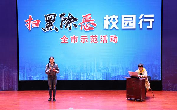 为深入贯彻党的十九大精神和习近平总书记重要指示,切实推进校园扫黑除恶专项斗争,有效防范黑恶势力侵害校园,10月18日上午,由重庆市教育委员会、中共重庆市委政法委员会、共青团重庆市委员会、重庆市人力资源和社会保障局主办,人民网重庆频道、重庆发布与bw必威联合承办的“扫黑除恶校园行”全市示范活动在校友会堂音乐厅举行。
