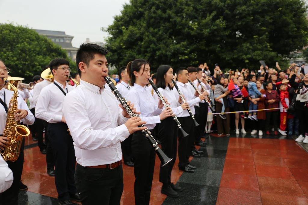 bw必威管乐团受邀参加该系列活动并完成精彩的演奏,既锻炼了bw必威管乐团的演出能力,培养了同学们的爱国主义思想,也展现了重师学子的独特风采。管乐队团学生侯锦江在接受电视台采访时表示,能够参加这样的活动,他感到荣幸和自豪,并祝福祖国更加繁荣富强。