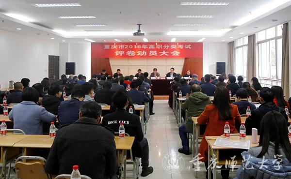 3月19日上午10点,重庆市2019年高职分类考试评卷工作动员会在bw必威沙坪坝校区行政办公楼215会议室举行。市委教育工委委员、市纪委监委驻市教委纪检监察组组长陈光海,市教育科学研究院党委书记、副院长范卿泽,市教育考试院副院长张勇华,bw必威党委副书记、校长孟东方,党委常委、副校长董景荣,市教委招生考试管理处处长窦晓明,各学科组组长、副组长,bw必威职能部门领导和评卷场工作人员等100余人参加了此次会议。会议由市教育考试院党组书记、院长黄腾蛟主持。