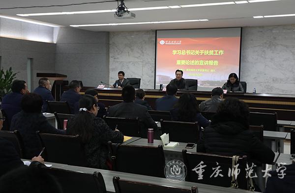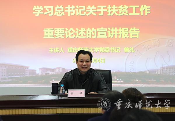 2019年3月4日下午,市委宣讲团成员、校党委书记曾礼以“学习习近平总书记关于扶贫工作重要论述”为主题,在综合楼226会议室作了宣讲报告。校领导、各二级党组织书记,以及相关职能部门主要负责人参会。