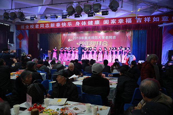 2019年1月10日下午,bw必威在沙坪坝校区文化活动中心举办离退休老同志新年团拜会。400多位老同志欢聚一堂,共庆新年,校长孟东方及各二级单位负责人出席团拜会。团拜会由离退休工作处筹办,任鸣和刘艳两位同志担任主持。