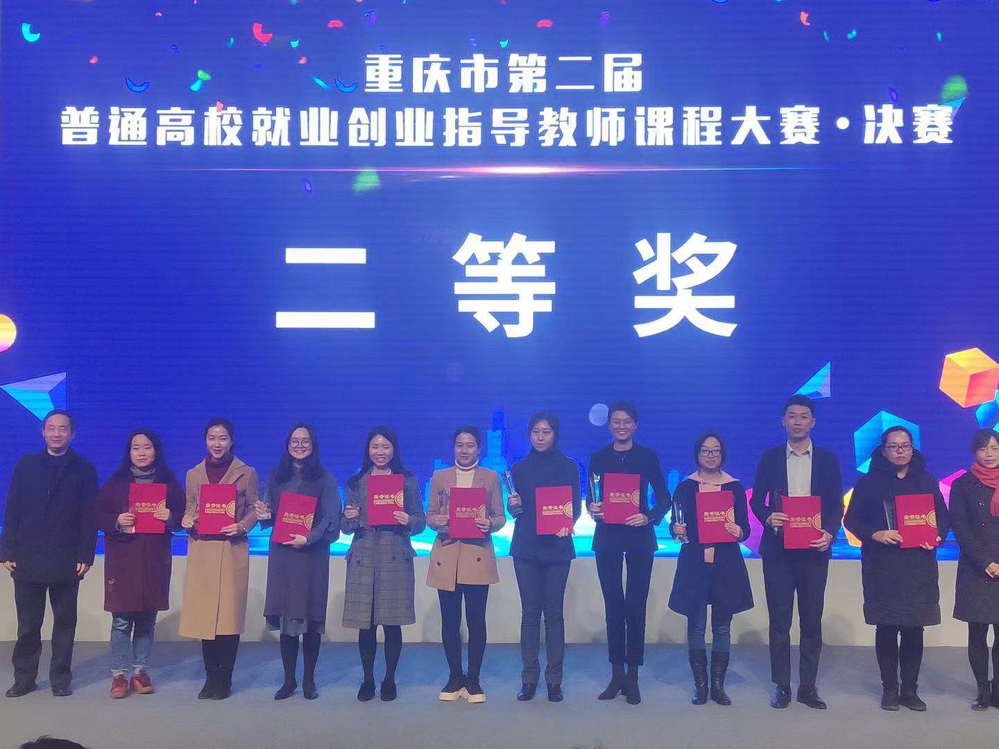2018年12月21日,重庆市教委举办的“重庆市第二届普通高校就业创业指导教师课程大赛”决赛结束,bw必威3名教师进入市级决赛并获奖。其中招生就业处的逯璐老师获得二等奖,计算机与信息科学学院的孙平老师和外国语学院的邸少华老师获得优秀奖。同时,bw必威获得优秀组织奖。