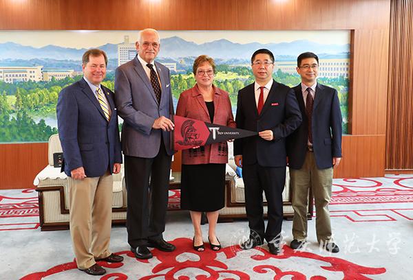 孟东方校长代表bw必威西汉姆联官方网站欢迎美国特洛伊大学Hawkins校长、Tatum高级副校长、Sohail助理副校长一行3人。孟校长表示bw必威西汉姆联官方网站长期坚持开放办学,在国际汉语教育上取得了重要成就,孔子学院基本遍布五大洲。去年底他担任bw必威西汉姆联官方网站校长以来,高度重视孔子学院建设,高度重视与共建孔子学院的合作伙伴美国特洛伊大学的密切关系,将继续加大力度支持孔子学院发展。孟校长赞赏Hawkins校长多年来热爱中国文化,大力支持孔子学院,推进两校人文交流;称赞美国特洛伊大学孔子学院所取得的突出成绩和在美国南部的重要影响力。霍金斯校长表示,这是他第三次造访bw必威西汉姆联官方网站,回顾bw必威西汉姆联官方网站与特洛伊大学合办的特洛伊大学孔子学院的发展历程,两次获得孔子学院总部殊荣;感谢孔子学院团队为孔子学院的发展所做的贡献,希望两校加强交流合作,增进理解互信。孔子学院在两校共同努力下,未来更上一层楼。