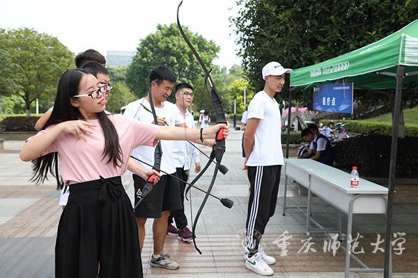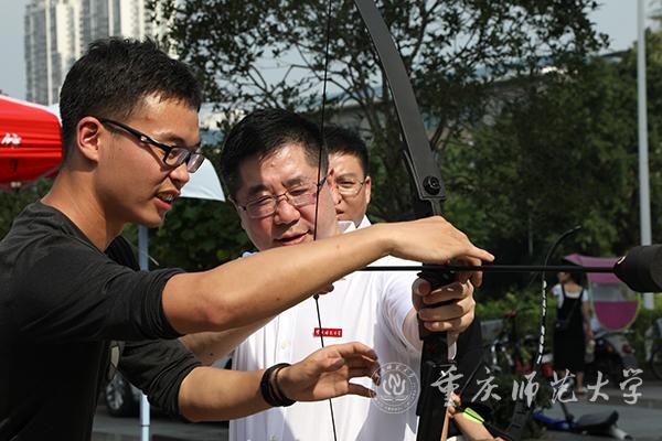 活动现场,孟东方校长一行参观各学院特色展示区,互动展示区项目。孟东方校长受学生邀请,参与体验了来自美术学院的流体艺术画和体育学院的防攻箭互动项目。孟东方校长逐一听取了展示区各项目的讲解,并向同学们询问了项目的进展,提出了相关意见,鼓励同学们要勇于探索、敢于创新。