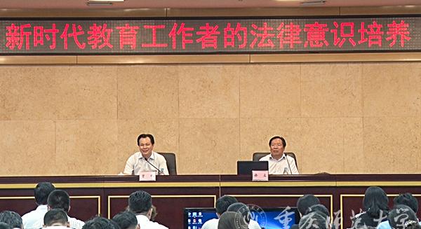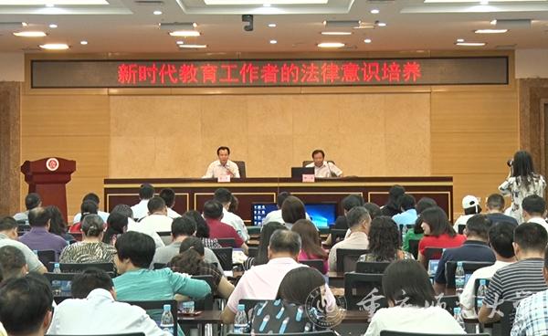 曾礼书记作总结讲话。他说,全面开启依法治国新征程是中国特色社会主义进入新时代的重要内容,依法执教是依法治国方略对教师职业的必然要求。教育工作者要树立法制意识、增强法律思维,全面推进依法执教,教育引导学生提高法律素养。
