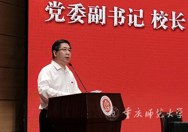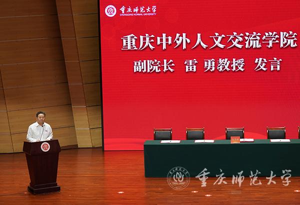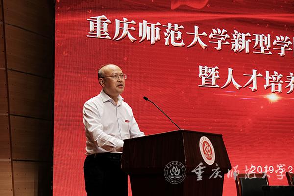 校党委副书记、校长孟东方在讲话中指出,两个新型学院的成立是重庆市在服务国家战略需求、对接区域产业转型、推进高等教育优化布局等领域的重大改革与实践,充分体现了上级部门对学校综合实力和办学水平的肯定与信任。学校积极响应“一带一路”倡议和“人工智能”“人文交流”等发展战略,贯彻落实习近平总书记对重庆提出的“两点”定位、“两地”“两高”目标、发挥“三个作用”的要求,建设“新工科”“新文科”,努力为国家和地方经济社会发展作出贡献。孟校长分别对两个学院的建设提出了希望和要求。孟校长希望重庆中外人文交流学院对标国际化,服务好重庆市内陆开放高地建设的战略需求;继续推进完善“孔子学院”和“汉语师范学院”的科学布局,着力培养具有世界格局和中国情怀的中华文化的传播者;聚焦重庆中外人文交流“南北走廊”建设,为“一带一路”共建实践提供人才和智力支撑。孟校长希望智能科学学院立足现有学科专业特点和研究平台优势,促进相关学科交叉融合,凝练学科特色;深化产教融合,培养国家和地方经济社会发展急需的大数据智能化应用型人才,坚持创新引领,加快成果转化,积极推进重庆市人工智能科技创新;发挥教师教育优势,积极探索开展“智能+师范”教育,着力打造适应未来教育需求的人工智能师资队伍。