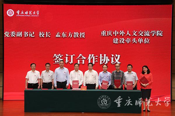 校党委书记曾礼宣读了设置新型学院的文件后,与党委副书记、校长孟东方,副校长、重庆中外人文交流学院常务副院长陆远权,重庆中外人文交流学院副院长雷勇、副院长官品共同为重庆中外人文交流学院揭牌。随后,曾礼书记、孟东方校长、智能科学学院党委书记陈兰、院长魏延共同为bw必威西汉姆联官方网站智能科学学院揭牌。接着,孟东方校长与重庆中外人文交流学院建设牵头单位签订了责任书。智能科学学院院长魏延与企业签订了校企合作协议。