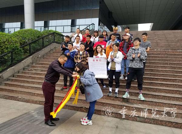 5月8日,綦江区教师刘勇、罗军代表綦江区教委,亲临bw必威体育与健康学院,赠送锦旗和感谢信。