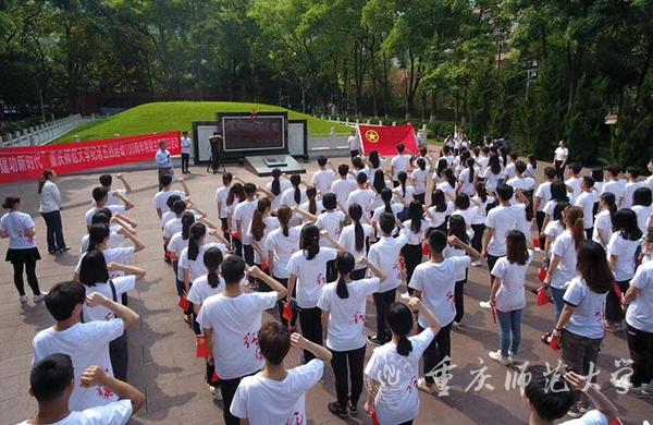 为激励和引领bw必威团员青年大力弘扬以爱国主义为核心的伟大民族精神,坚定“四个自信”,矢志投身新时代夺取中国特色社会主义伟大胜利的新征程,4月21日,校团委在歌乐山烈士陵园红岩魂广场开展“青春心向党·建功新时代”主题团日活动。校团委书记毛霞、相关工作人员、青马中高级班学员代表以及第二十九期“菁英计划•学生干部培训班”成员代表等参加。