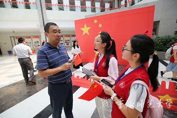 作为一名即将站上三尺讲台的师范生,“立德树人”的教师游行方队吸引了2018级思想政治教育专业学生王志诚的注意力。“未来定要当好学生的领路人,为培养担当民族复兴大任的时代新人做出自己的贡献!”他的眼中闪烁着希望,“愿祖国母亲生日快乐,国家繁荣昌盛,人民安居乐业!”