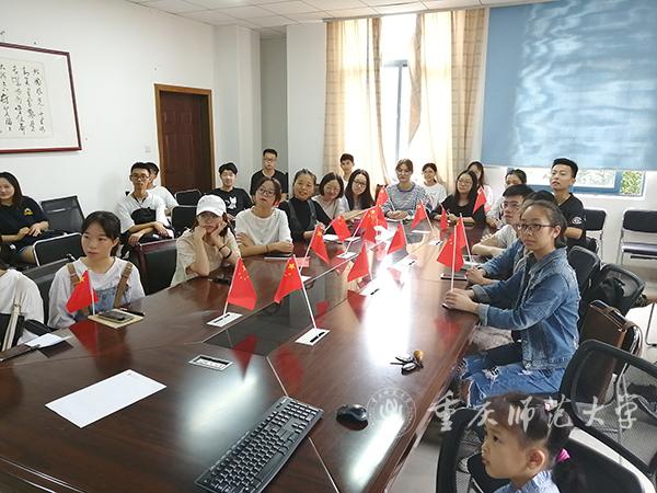 校党委副书记、校长孟东方,党委副书记龚燕与师生代表在“青马”工程全国研究培训基地收看实况直播;重师师生分散在校内LED户外大屏处,观看庆祝中华人民共和国成立70周年大会;全校各二级基层党组织、各单位专门安排场地,利用网络、电视等媒体,组织本单位干部师生集中收看。