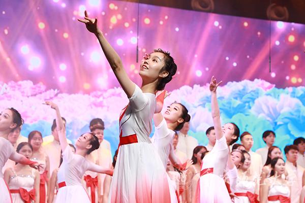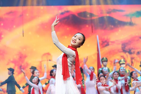 东风吹来满眼春,改革开放起春潮。改革开放承载了人民共同富裕的梦想,解放思想唤醒了中华儿女青春力量。“地球分娩出一个古老而又年轻的巨人叫:中国!”演员喊出这篇大气磅礴、意境深邃的《喊黄河》,令观众感受到中华民族积极进取、勇往直前的开拓精神和无所畏惧的英雄品格;《春天的故事》用舞蹈礼赞中国的繁荣昌盛,用歌声唱出人民蒸蒸日上的幸福生活;由全国最美教师郑璇教授指导的30位教育科学学院的学生表演了手语舞《国家》。表演者的每一个动作都蕴含着对祖国无比的赤诚,于无声处胜有声。