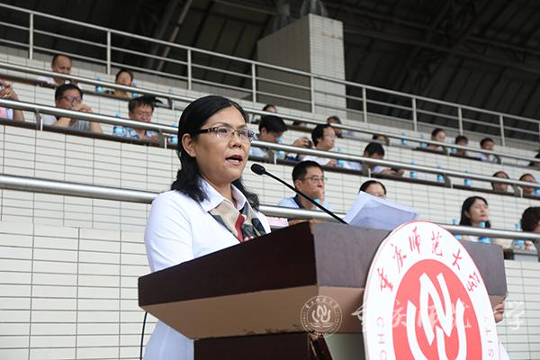 校党委副书记、2019级新生军训师副政委龚燕宣布2019级学生军训师建制暨任职命令,并作军训动员。