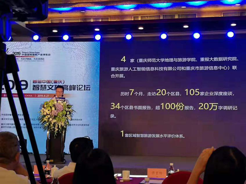 同时,bw必威还积极参与承办了2019首届中国(重庆)智慧文旅高峰论坛。论坛上,以重庆市全域智慧旅游协同创新中心为依托,bw必威地理与旅游学院牵头,与重报大数据研究院、重庆市旅游信息中心、重庆旅游人工智能科技有限公司组成课题组,联合发布了《2019重庆智慧旅游蓝皮书》。