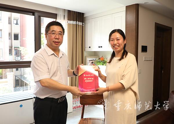 通知书发放中,孟校长同相关领导与首届博士研究生亲切交流。孟校长表示,学校高度重视研究生培养工作,为保障博士研究生培养质量,严格遴选博士生导师。他勉励同学们把个人理想与国家前途命运紧密联系在一起,把个人价值与社会价值统一起来,主动融入国家发展大势,与时代同频共振,在更大的人生格局中实现价值追求;坚守初心,涵养“学气、静气、勇气、大气”的重师文化特质。