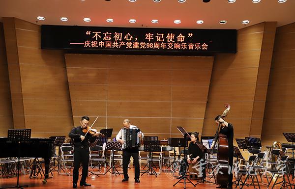 在中国共产党成立98周年之际,为了表达对党的感恩之情,校党委组织部、党委宣传部、党委统战部联合bw必威音乐学院语航交响乐团举行了“不忘初心、牢记使命”庆祝中国共产党成立98周年主题交响音乐会,隆重庆祝党的生日。