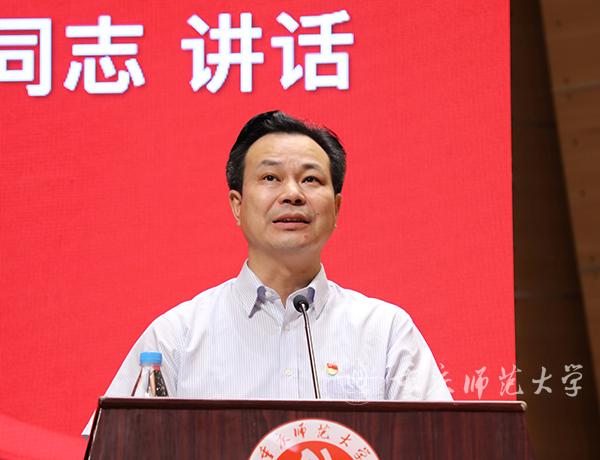 曾礼书记强调,学校新近召开的第三次党代会和本科教育大会,对今后五年的指导思想、奋斗目标和发展战略做出了系统设计,提出了“四大发展战略”和“九大重点任务”,制定了《加快建设高水平本科教育五年行动计划》等“1+4”内涵式发展行动计划。“蓝图已经绘就,任务已经明确,我们要进一步强化使命担当,发扬钉钉子精神,撸起袖子加油干”。各级党组织和全体党员要紧密团结在以习近平同志为核心的党中央周围,牢记为党育人、为国育才的使命,以自我革命精神持续加强党的建设,把习近平新时代中国特色社会主义思想落实在重师校园,为实现教师教育特色鲜明的高水平综合性师范大学的奋斗目标提供坚强的政治、思想和组织保障,为实现“两个一百年”奋斗目标和伟大“中国梦”作出新的更大贡献。