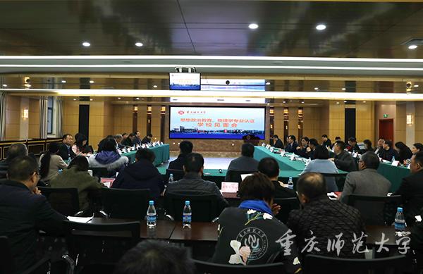 重庆市教育评估院书记、院长刘云生就认证工作目的、任务、理念、要求及现场考查的必要性做了说明。他指出,要抓住师范类专业认证的契机,做好协同共建这篇大文章。政府、学校、社会以及评估机构要共同努力,加强对话和交流,推动师范类专业提档升级;要抓住现场考查认证的契机,做好专业认证工作。专家组进校考查认证要坚持问题导向、持续改进的工作基调,为专业改进教学工作、提高人才培养质量提出切实可行的意见和建议,促进师范类专业的进步与发展;要抓住专业认证的又一次实践,做好专业认证工作本身的持续改进。教育评估院要把监测、评估、认证工作做到专业、阳光、规范与高效,抓住每一次机会做好认证工作的总结和反思。