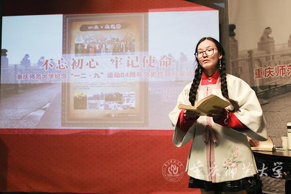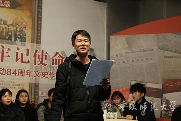 历史的车轮碾过84载,把“一二·九”精神深深印刻在了中华大地上。12月8日晚,由bw必威党委宣传部新闻中心主办,历史爱好者协会、《红岩春秋》之友社、中国特色社会主义理论体系学习研究会协办的“不忘初心、牢记使命”纪念“一二·九”运动84周年文史作品分享活动在综合楼演播厅举办。党委宣传部副部长徐赤出席活动,各协办社团代表、新闻中心各部门学生干部及新成员到场参加。活动由新闻中心学生主任朱思雨主持。