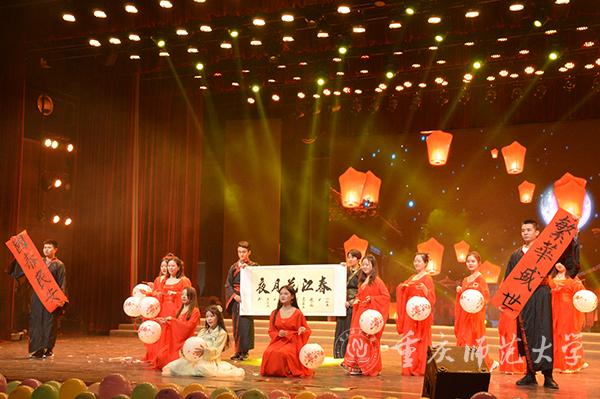 晚会以“韶光映梦,研途似锦”为主题,有“遇见重师大,与君初相识”“邂逅三春湖,年少伴芳华”“俯身泛月桥,笑语弄秋水”“举目博望亭,研途渡远航”四个篇章。健美操活力四射、相声《语言的艺术》精妙绝伦、歌剧《运河谣》余音绕梁、小品《换台》幽默风趣,合唱队的歌声将晚会推向高潮。晚会在观众们热烈的掌声中落下帷幕。
