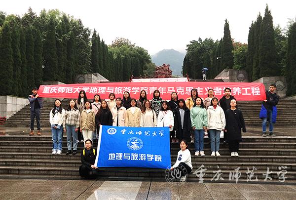 在烈士群雕前,地旅学院第十一期“青马工程”初级班成员怀着悲怆的心情为革命先辈朗诵了叶挺所写的《囚歌》一诗,向革命先烈表达最深情的思念和最崇高的敬意。师生们来到先烈的陵墓前,低头哀悼、敬献鲜花。