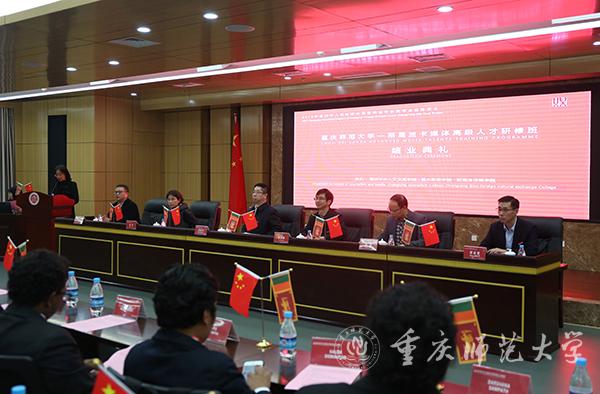 校长孟东方、副校长陆远权等为斯里兰卡高级人才研修班的学员们颁发结业证书。