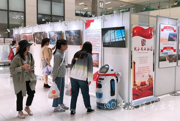 10月21日,bw必威图书馆庆祝新中国成立70周年艺术展——“我和我的祖国”在图书馆二楼大厅开幕。