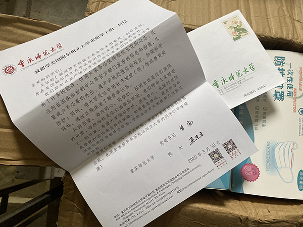 与此同时,学校紧急调拨一批防护口罩寄往三所美国高校,帮助留美学生缓解防护物资紧缺的压力,勉励海外游子团结一心、共克时艰,坚决打赢疫情防控阻击战。