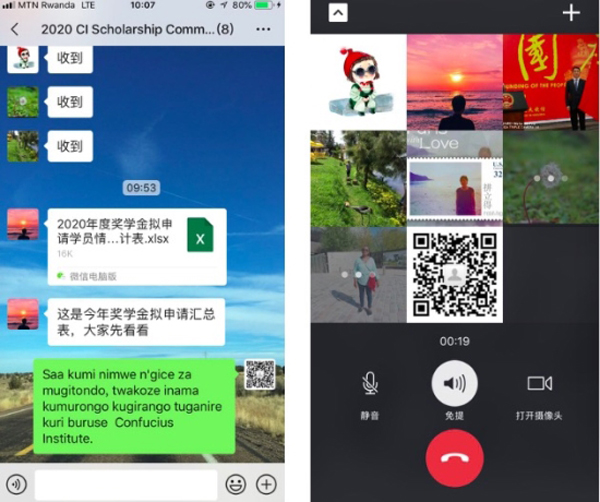 “这是我第一次使用微信参与线上工作会议,效果很好!”当地时间3月30日,2020年度孔子学院奖学金线上工作会议结束后,外方院长Yanzigiye Beatrice表示。为有效保障疫情防控和学院发展“两手抓”,中卢积极联动,将原本计划暂停的会议成功转移到线上平台。此外,在卢旺达赛区的第十三届汉语桥世界中学生的中文比赛提交了线上比赛的方案,切实把线上工作落到实处。