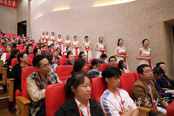 “一条大河波浪宽,风吹稻花香两岸……”bw必威音乐学院学生唱着深情悠扬的歌声从两侧缓缓步入会场,全场齐唱国歌后,大会拉开帷幕。全体人员共同观看bw必威西汉姆联官方网站文化形象宣传片《重师文化滴翠》,该片展示了学校文化建设取得的可喜成绩,展现了全体重师人良好的精神风貌,彰显了浓厚的重师情怀。