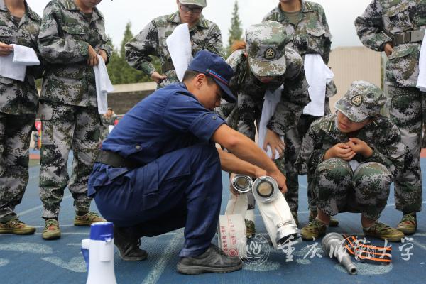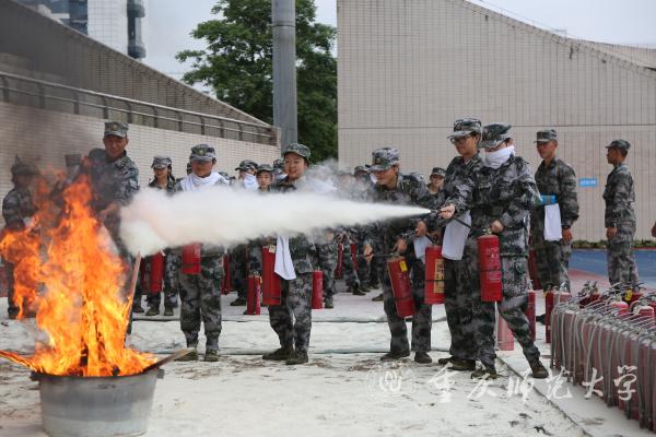 为全面提高bw必威新生消防安全素质和自防自救能力,深入推进大学军训工作,丰富军训教学内容。9月23日下午,由学校保卫处、军训办等多部门联合组织了一场新生消防演练。