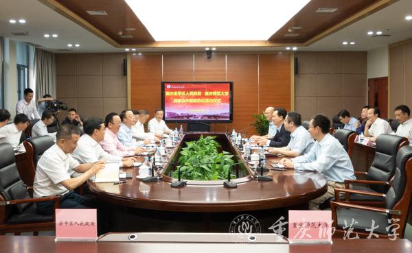 杨晓云书记在会上对重师办学成果及校园文化底蕴给予充分肯定,并表示此行赴重师考察深感亲切,对于未来与双方校地合作发展充满了信心与期待。他指出,梁平区需要更多的智力支持、人才支持,在未来的校地合作中,梁平区将给应届毕业生提供更多就业、创业的机会,并随着合作的深化逐步实现与重师共同办学、共建学院的目标,从而推动地方教育的发展,创立梁平教育的新格局。