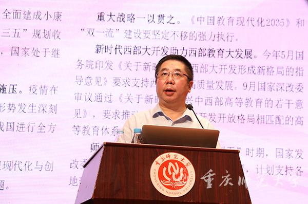 孟校长从国家、教育、重庆、学校四个层面对当前形势任务进行了分析,强调bw必威全力抓好内涵式发展的重要性,并提出了总体要求——要落实党代会精神,按照“1+4”五年行动计划、2020年目标任务抓落实,深入实施本科教育振兴、学科引领联动、重师文化建设、特色发展四大发展战略,全力抓好申博、学科评估、参与科学城建设、编制“十四五”规划等重点任务。他对下半年主要工作进行了以下部署:一是持续做好常态化防疫工作,采取从严从实从细落实疫情防控精神、进一步完善疫情防控方案、加强入校健康检测等主要举措,对学生、教职工加强“柔性”管理。二是全面抓实从严治党,进一步加强思想建设、基层组织建设、干部队伍建设、统战工作和工会工作,抓牢纪检监察工作,并认真做好巡视整改成效评估。三是抓好学科建设重点任务,抓牢抓实申博、第五轮学科评估、重庆市一流学科、重点学科验收等工作。孟校长强调,要实现博士点“由一变多”、学科评估“进档升位”,申报、评估材料要反映学科实力、特色和亮点,既要注重人才队伍、教学科研成果等核心内容,也要注重师德师风、社会服务等主观评价。四是开好学校文化建设大会,进一步加强文化建设。做好完善校园文化体系、部署下一步文化建设重点任务、加强文化阵地建设等工作,全面推进学校精神、制度、行为、环境文化建设。五是开好学校科研工作大会,通过创新机制、修订相关制度、部署下一步科研工作重点任务等工作推动科研工作落地。六是抓好人才培育工作。深入贯彻落实本科教育大会精神,深化思想政治教育工作,抓住职业教育机遇,提升继续教育水平。七是加强人才队伍建设。进一步落实人才工作大会精神,抓好人才培引工作和师德师风建设。八是深入持续抓好就业工作。要完善新形势下就业工作体系,各部门要强化工作责任,打好组合拳,形成工作合力。九是优化内部治理,提升管理效能。要稳步推进内设机构优化与设置,持续推进教育领域综合改革,推进“十四五”规划编制工作,加强财务管理,进一步加强内部审计工作并做好审计整改工作。十是提升开放办学水平。要推进国内合作交流,加强国际合作,同时盘活资源,加强校友工作。十一是强化条件保障。要抓好基本建设,加快推进信息化项目建设,做实后勤与资产保障。十二是持之以恒抓好民生工作。通过定期召开师生座谈会听取意见建议、进一步加强各类用房统筹管理、建好一批群众性体育设施等工作办好民生实事,提升师生获得感、幸福感、安全感。