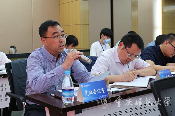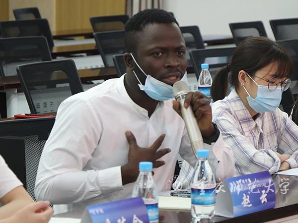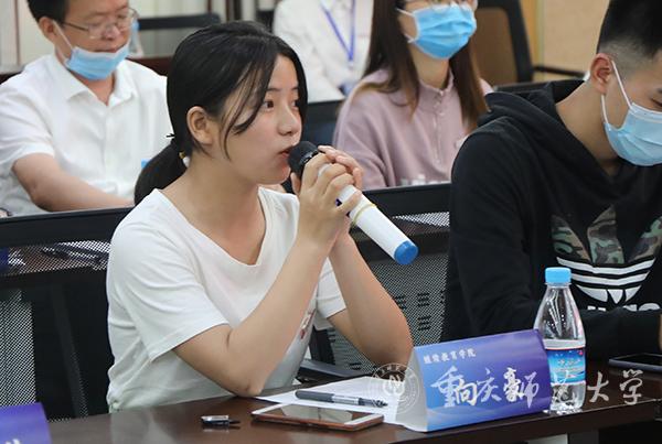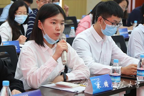 学生代表分享了返校后的所见所感,并从不同角度提出建议。继续教育学院2018级学前教育专业学生向豪表示,作为今年提前返校进行健康观察的湖北学生,校领导的关心问候、辅导员的悉心照顾让她感受到了学校的温暖,同时就沙坪坝校区的宿舍条件等提出建议。初等教育学院2018级科学教育专业朱锦同学感谢学校对北碚校区的关心,就寝室热水供水、食堂等生活方面提出建议。物理与电子工程学院2017级光学硕士研究生敬英提出学校应合理布局实验室和学习室,关注研究生的心理状况等。2017级留学生赵云提议可提供更多中国学生与留学生之间交流互动的机会……27名学生代表对学校在疫情期间的贴心周到服务表示感谢,并从教学模式、硬件设备、招生就业、学术活动、培养方案、基础设施等多个方面提出意见建议。