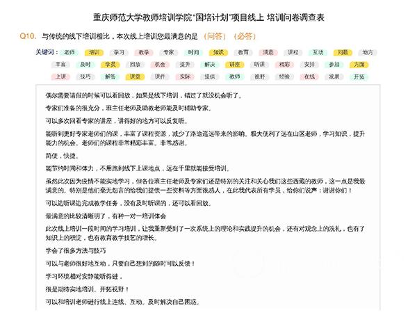 截至目前,两个项目实施顺利,本次线上培训的专业培训平台、培训专家、班级管理人员、课程设计、课程资源等方面都获得了学员们的一致认可。