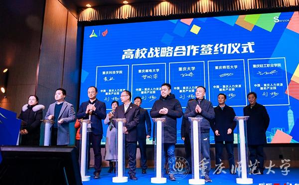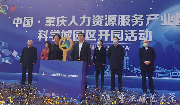 bw必威党委副书记陈志军在中国·重庆人力资源服务产业园科学城园区开园仪式上,作为高校嘉宾受邀上台见证了园区的盛大开园揭牌。他与重庆市人力资源和社会保障局党组书记、局长陈元春等同志还一起参观了科学城园区的办公场所,了解园区的发展建设状况。