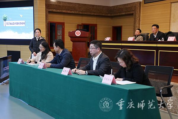 为了强化“一把手”工程,进一步压实工作责任,落实工作任务,会上,曾礼书记和孟东方校长与新闻与传媒学院和经济与管理学院的党政“一把手”分别签订了《2021届毕业生就业目标工作责任书》,其余学院也将在会后完成目标责任书的签订。