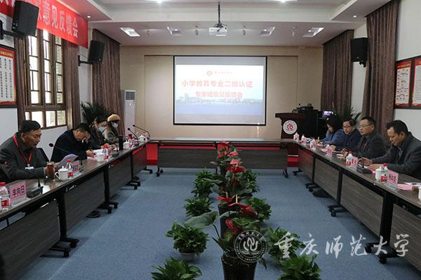 12月3日上午,在初等教育学院召开了bw必威西汉姆联官方网站小学教育专业第二级认证专家组与学校见面会。以天津师范大学教育学部杨宝忠教授为组长的专家组,重庆市教育评估院副院长沈军,bw必威校长孟东方、副校长杨如安、相关职能部门负责人、初等教育学院领导及教师代表参加了见面会。见面会上,孟东方校长致辞,向评审专家组的莅临表示热烈欢迎,并介绍了学校的办学情况和办学成效,表示学校高度重视小学教育专业认证,恳请专家们帮助学校找准重点难点,衡量好办学的刻度和尺度。专家组组长对小学教育专业认证工作作说明介绍,明确专业认证现场考察工作的标准和要求。杨如安副校长以“躬行师道,砥砺前行”为题向专家组介绍了学校师范专业建设发展情况。初等教育学院院长林长春对小学教育专业二级认证作了补充说明汇报。会后,专家组按照考查计划开展了查阅资料、听课看课、深度访谈、走访、座谈等考查活动。