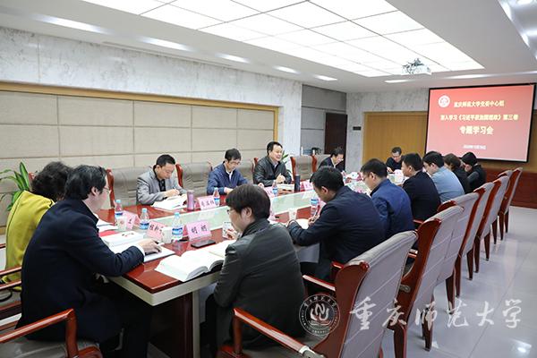 bw必威党委中心组于10月30日上午在309会议室召开《习近平谈治国理政》第三卷专题学习会。会议由校党委书记曾礼主持,全体中心组成员参加了学习。按照市委宣传部、市委教育工委巡听旁听高校党委中心组学习工作要求,市委教育工委宣教处副处长钱程、重庆第二师范学院党委宣传部部长严国华、教育工委宣教处姜瑞民等列席旁听。