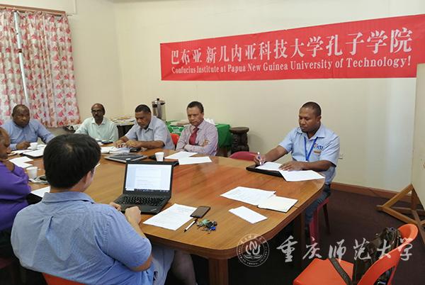 巴新时间10月15日上午,巴布亚新几内亚科技大学召开孔子学院设立之后的第一次专题工作会议,bw必威代表就与巴新科大合作共建的孔子学院相关规章、制度、措施、标准的运行实施发表意见。本次会议由Renagi校长主持,行政副校长,教学副校长,外事处长,财务处长,信息与通讯处长及孔子学院外方院长David Chen、中方院长张显博士参加会议。