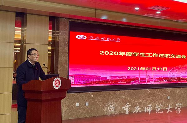 交流会后,学生处处长侯明志就年终目标考核、寒假及开学初期工作进行了安排布置,特别强调了对寒假留校学生的管理与服务、疫情防控等工作,同时也对学校今年将承办的重庆市辅导员素质能力大赛做了布置,要求全体辅导员积极参赛、提前准备,争取取得好的成绩,并以此次大赛为契机,促进bw必威学生工作再上新台阶。